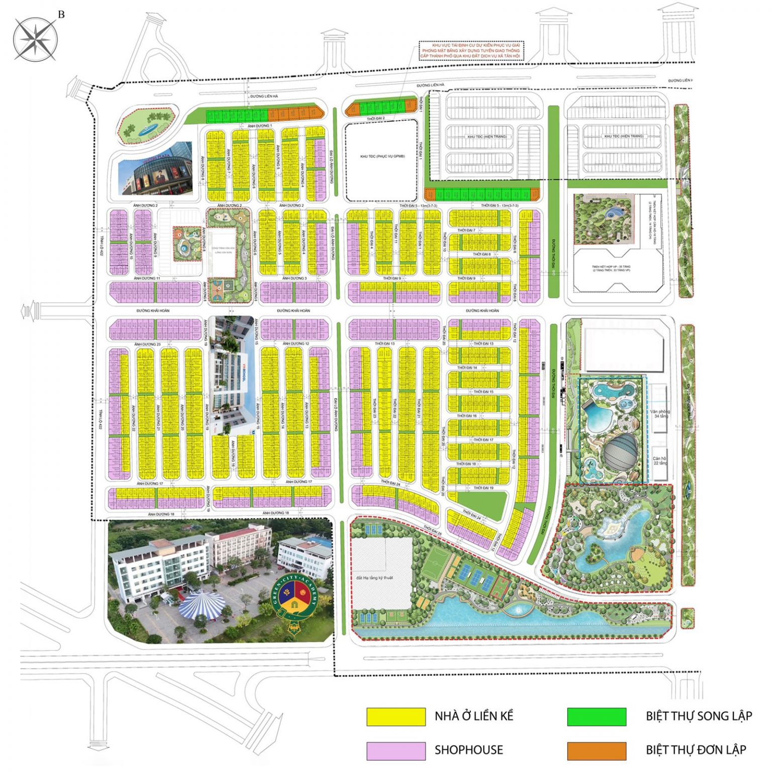 - Đường Liên Hà (40m): Chạy dọc phía Tây Bắc, kết nối với các khu dân cư và tiện ích xung quanh.