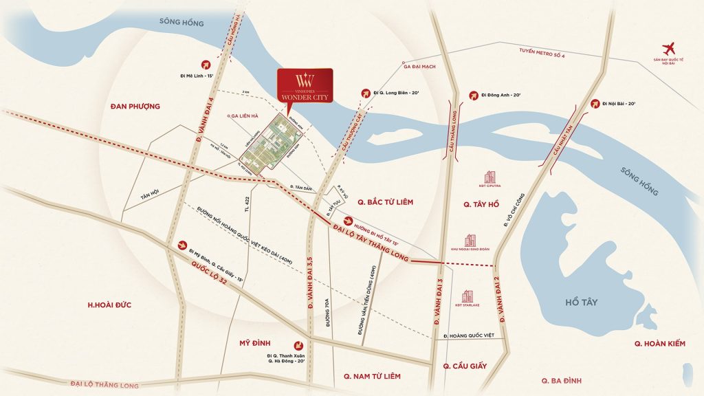 - Đại lộ Tây Thăng Long: Kết nối nhanh chóng vào trung tâm Hà Nội và các khu vực lân cận.