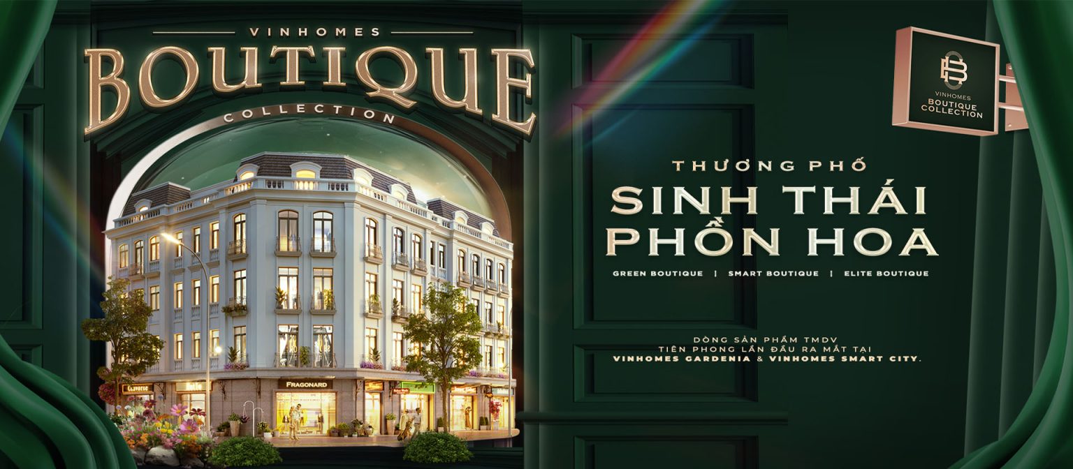 Boutique Collection là dòng sản phẩm BĐS thương mại được Vinhomes phát triển tại Vinhomes Smart City và Vinhomes Gardenia. Mô hình này hướng đến xu hướng Boutique Commerce, đề cao trải nghiệm cá nhân hóa, nâng cao giá trị thương hiệu và tạo sự khác biệt trong kinh doanh. Sự ra mắt của sản phẩm đã tạo nên làn sóng lớn trên thị trường, đặc biệt tại khu vực phía Tây Hà Nội.